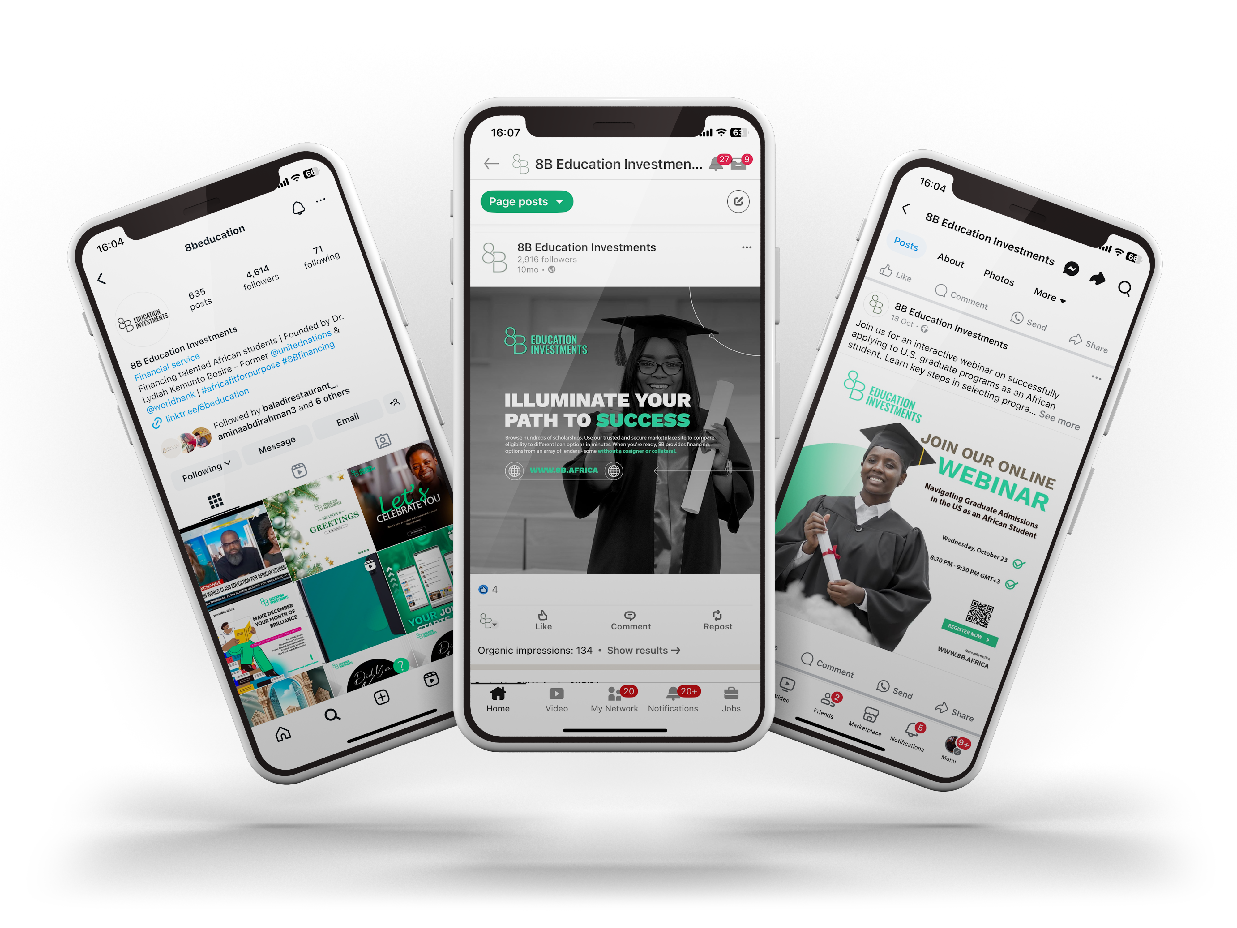 For 8B Education Investments, I was entrusted with elevating their brand and solidifying their presence across digital platforms. My primary role was to develop a comprehensive marketing strategy that encompassed social media management, SEO optimization, and general marketing efforts